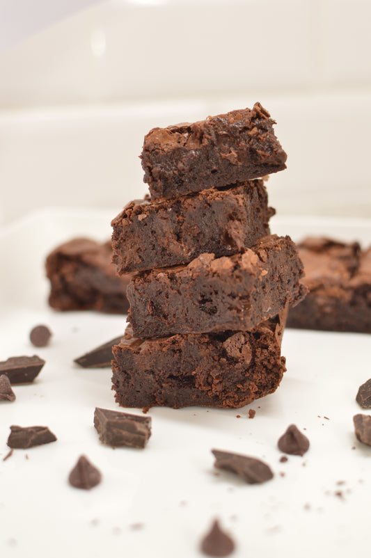 Indulge in a rich, flourless fudgy brownie with a dense, almost gooey texture that melts in your mouth. These brownies deliver an intense chocolatey experience sure to put a smile on your face. The exterior boasts a delicate crackle, while the interior remains irresistibly moist, resembling the decadence of fudge. These are the best brownies you will ever taste and to top it off, they are gluten sensitive so everyone can enjoy!