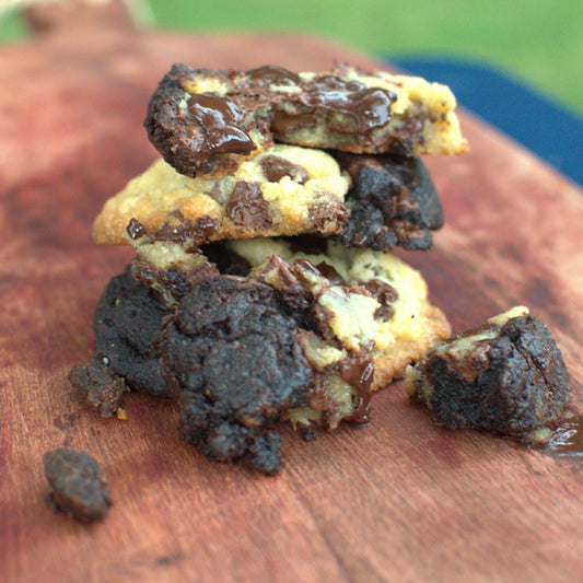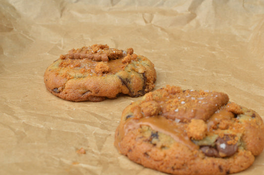 Checkout our chocolate lovers cookie box! Full of delicious flavors including a brown butter chocolate chip & toffee, brookie cookies & cream, classic chocolate chip, and a double chocolate salted caramel cookie. These dozen cookies take our classic flavors and add a little extra indulgence to kick it up a notch!