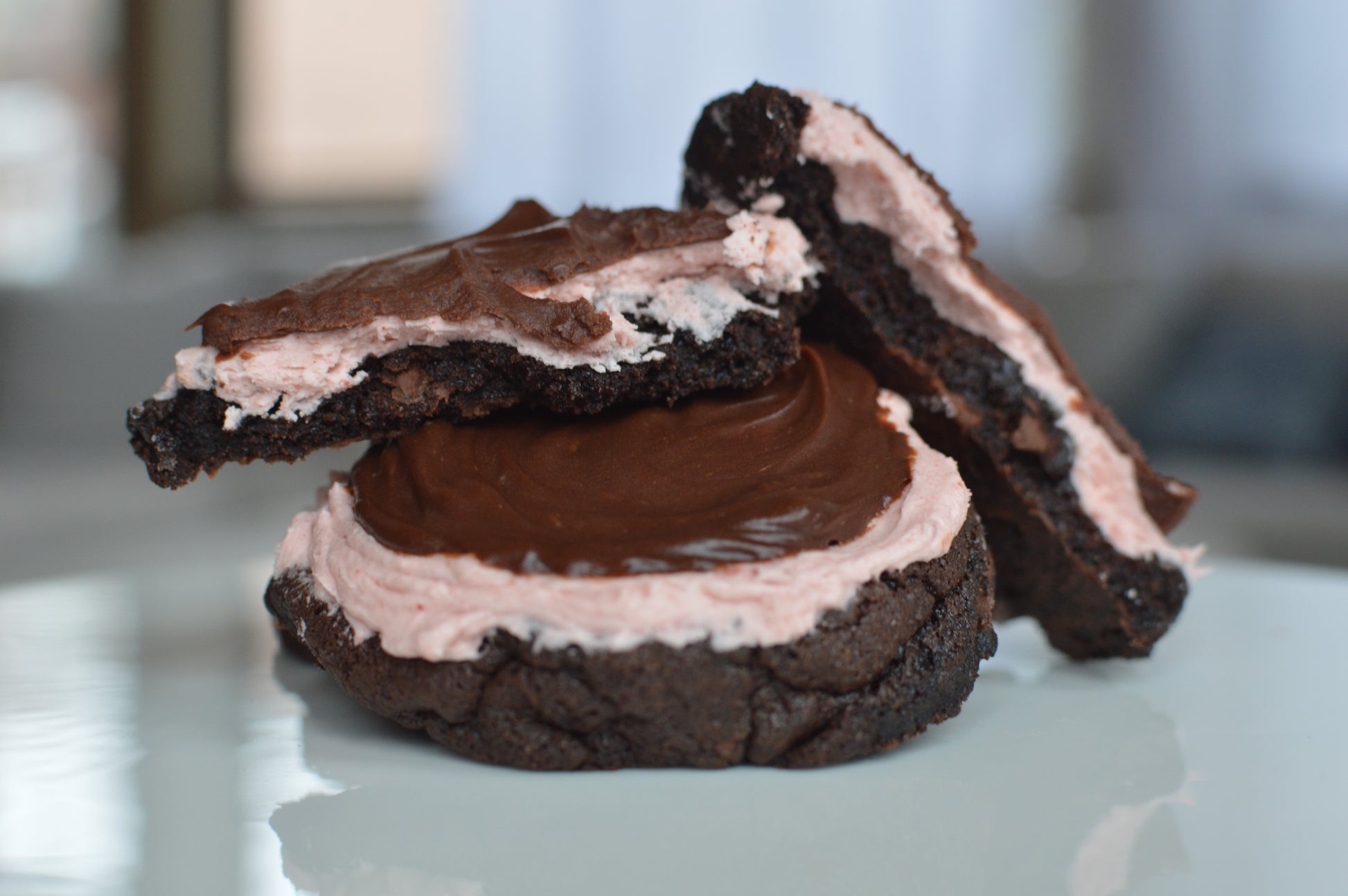 - Chocolate Strawberry Cookie—rich chocolate cookie topped with strawberry buttercream and finished with silky chocolate ganache