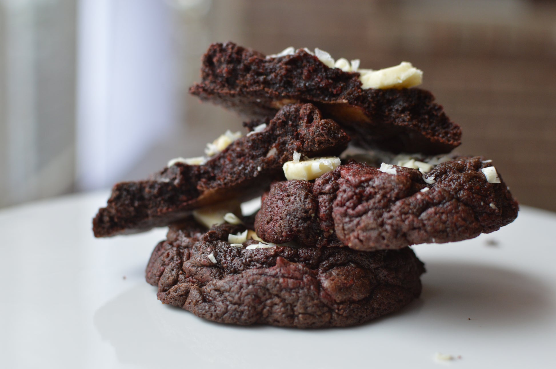 - Velvet Cocoa Cookie with White Chocolate Chips—A rich, velvet cocoa-forward cookie made without artificial red dye and loaded with creamy white chocolate chips